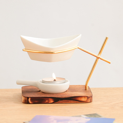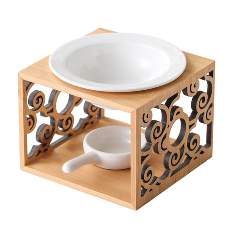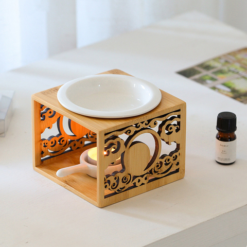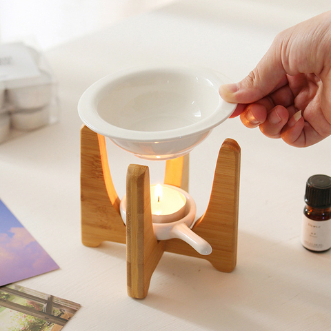Lámpara de Perfume de bambú, Quemador de aceite, estufa de aromaterapia para decoración del hogar, quemador de fusión de cera de cerámica con portavelas