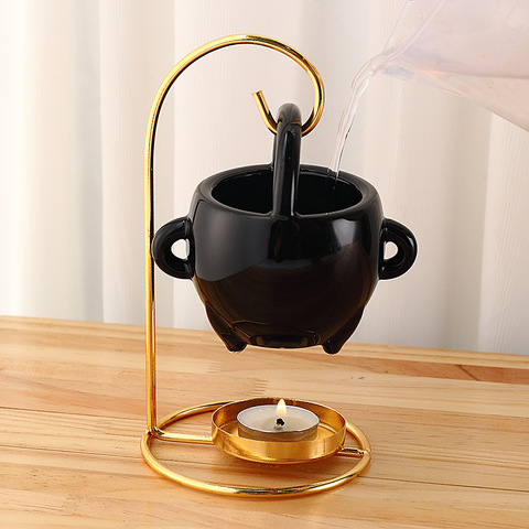 Venta al por mayor de cerámica blanca soporte de metal negro Cera colgante quemadores de fusión aromaterapia quemador de aceite esencial decoración del hogar