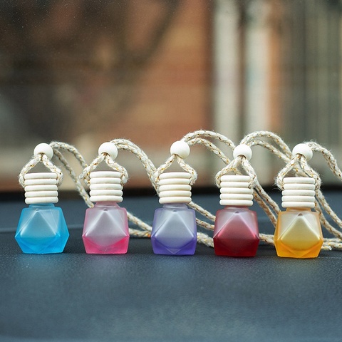 Botella de Perfume de coche de vidrio esmerilado mate de 8ml, colgante de Perfume de aceite de diseño geométrico para decoración de coche